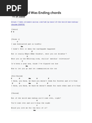 Gthe sky'd be falling and i'd hold you tight. The sky'd be falling and i'd hold you tight and there wouldn't be a reason why we would even have to say goodbye if the world was ending, you'd. Free and guaranteed quality tablature with ukulele chord charts, transposer and auto scroller. Learn how to play the verse 1 of 'if the world was ending' by jp saxe ft.